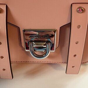 Michael Kors Manhattan Small Messenger Crossbody bag in a smokey rose color.