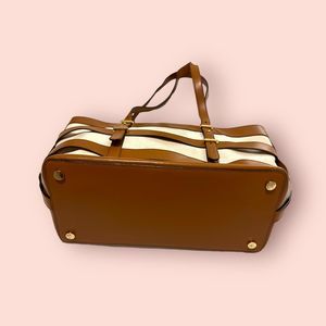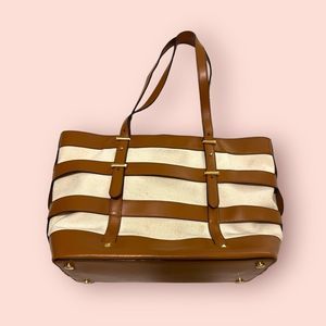 Michael Kors Marie Medium Cage Tote Bag Canvas Leather Stripes