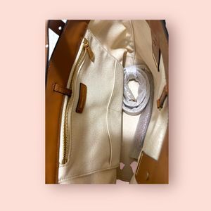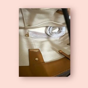 Gold Hardware logo accents, studded details, and metal feet Interior features wall zip pocket and 2 compartments