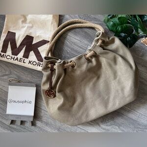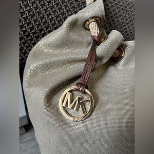 Michael Kors Marina Gathered Drawstring Gold Metallic Shimmer Hobo Shoulder Bag.