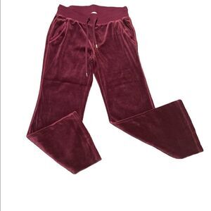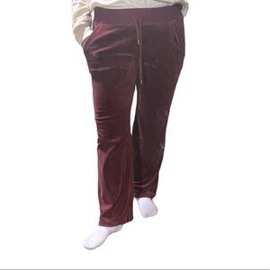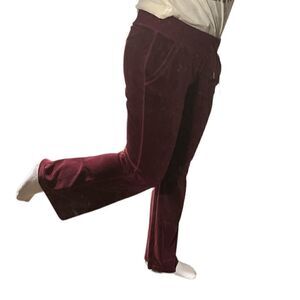 Michael Kors Maroon Crushed Velvet Wide Leg Drawstring Pants