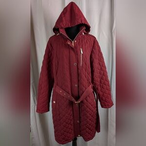 Michael Kors Maroon Puffer Jacket with Quilted Design