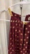 Elegant maroon sleeveless top. Gold dot pattern. Chain detail at neckline.