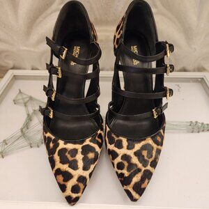 Michael Kors "Marta" Strappy Leopard Print Calf Hair Heels. NIB. Size 9