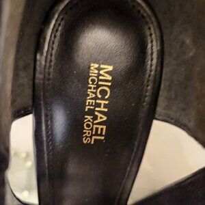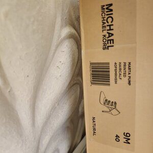 Michael Kors "Marta" Strappy Leopard Print Calf Hair Heels. NIB. Size 9. Customer return or floor model has some dirt markings on the bottoms, no other flaws/peeling/tears/wear. So nice. Came in a pallet. NIB/Original box. Smoke free home. No odors. All offers are welcome. Thank you! See final 2 pictures for the dirt markings on the bottoms.