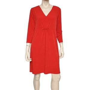 Michael Kors Matte Jersey V-Neck 3/4 Sleeve Shift Dress Red 8/10/14 $130
