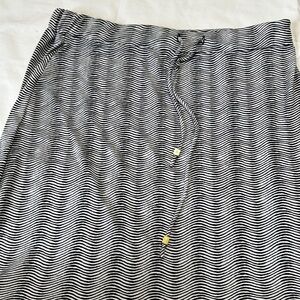 Michael Kors Maxi Skirt Medium Black Wave Print Pull On Drawstring Stretch