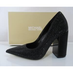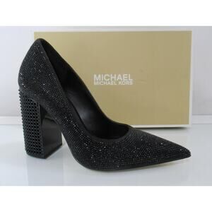 Michael Kors Maxine Block Heel Rhinestone Dress Pumps Pointed Toe Black Size 7.5
