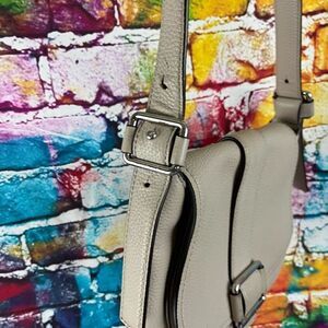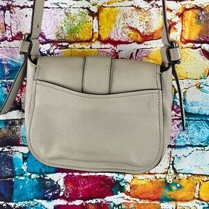 Michael Kors Maxine Crossbody Saddle Bag Purse Gray Leather Magnetic Flap Closu