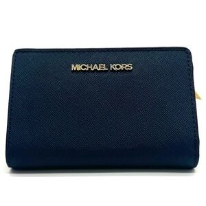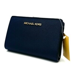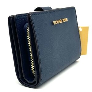 Michael Kors Medium Bifold Zip Chain Wallet Navy Blue