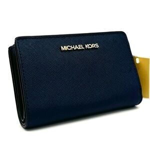 Michael Kors Medium Bifold Zip Chain Wallet Navy Blue