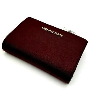 Michael Kors Medium Bifold Zip Chain Wallet Ox Blood