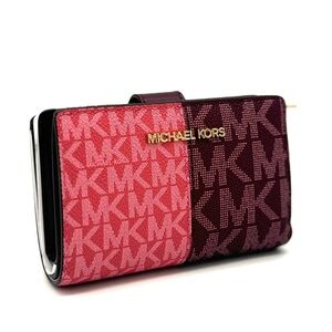 Michael Kors Medium Bifold Zip Chain Wallet Ox Blood Multi