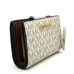 Michael Kors Medium Bifold Zip Chain Wallet Vanilla/Brown