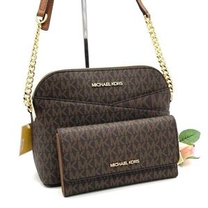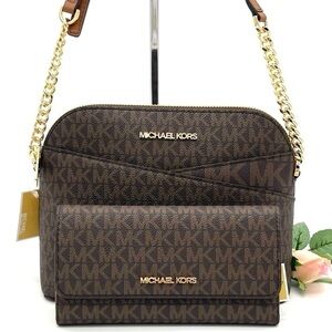 Michael Kors Medium Dome Crossbody Bag & Trifold Wallet Brown (NWT)
