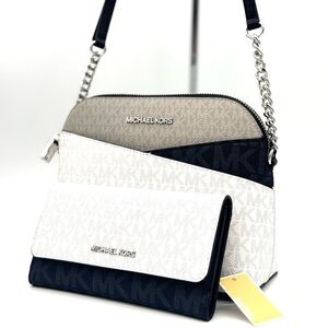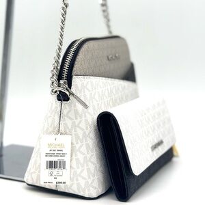 Michael Kors Medium Dome Jet Set Travel Xbody Bag & Trifold Wallet Optic White