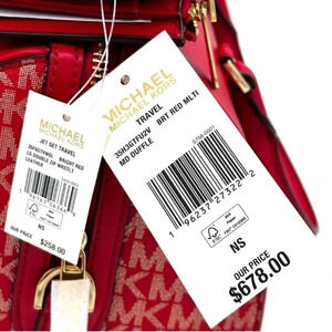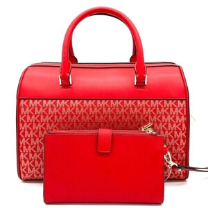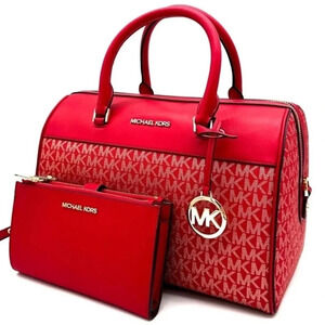 Michael Kors Medium Duffle Satchel Crossbody Bag & Large Double Zip Wallet Red