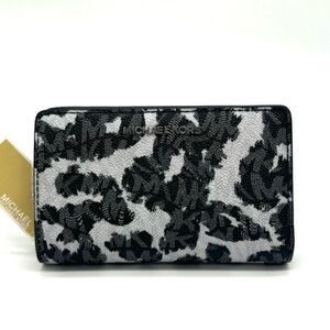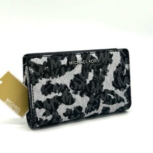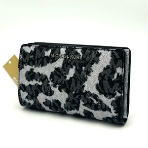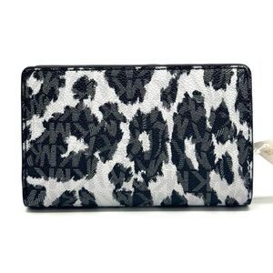 Michael Kors Medium Empire Leopard Logo Snap ZA Wallet Black Multi