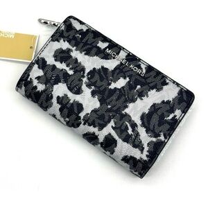Michael Kors Medium Empire Leopard Logo Snap ZA Wallet Black Multi