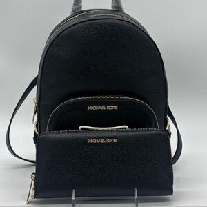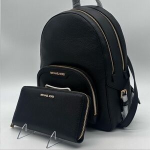 Michael Kors Medium Jaycee Backpack & Continental Wallet Wristlet Black