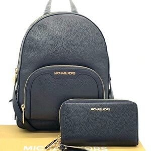 Michael Kors Medium Jaycee Backpack & MF Phone Case Wallet Black Leather Black