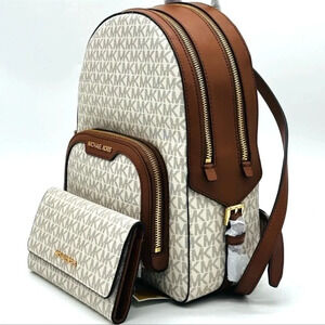 Michael Kors Medium Jaycee Zip Packet Backpack & Trifold Wallet Vanilla/Brown