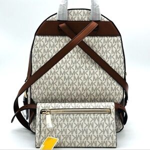 Michael Kors Medium Jaycee Zip Packet Backpack & Trifold Wallet Vanilla/Brown