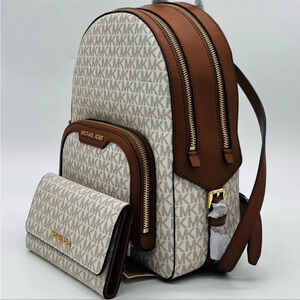 Michael Kors Medium Jaycee Zip Packet Backpack & Trifold Wallet Vanilla/Brown