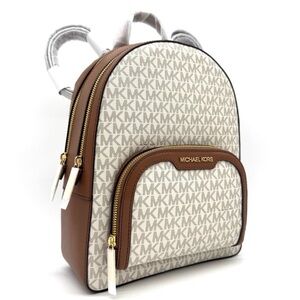 Michael Kors Medium Jaycee Zip Pocket Logo Backpack Vanilla/Brown