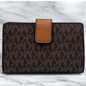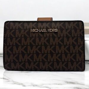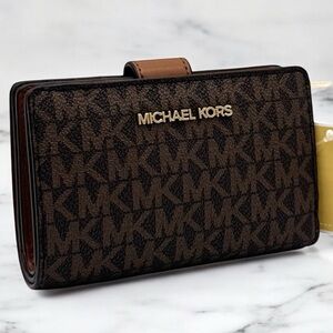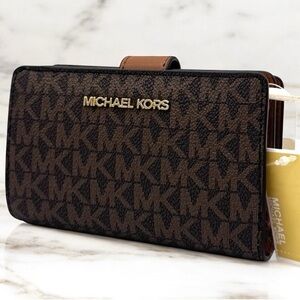 Michael Kors Medium Jet Set Travel Zip Chain Bifold Wallet Leather Brown