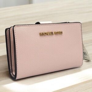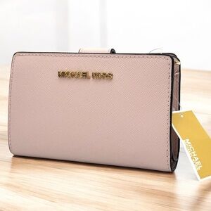 Michael Kors Medium Jet Set Travel Zip Chain Bifold Wallet Leather Powder Blush