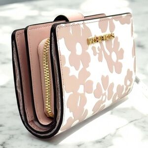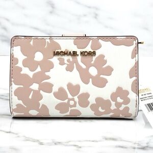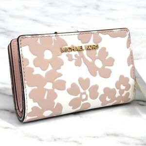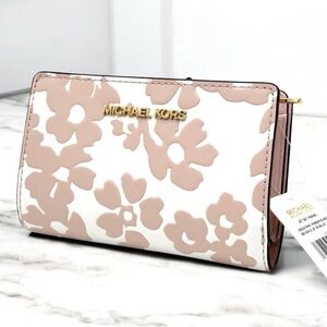 Michael Kors Medium Jet Set Travel Zip Chain Bifold Wallet Powder Blush Multi