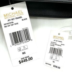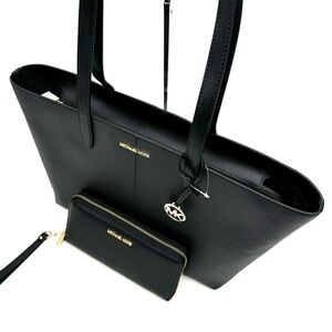 Michael Kors Medium Jet Set Travel Zip Tote Bag & Continental Wallet Black/Gold