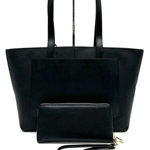 Michael Kors Medium Jet Set Travel Zip Tote Bag & Continental Wallet Black/Gold