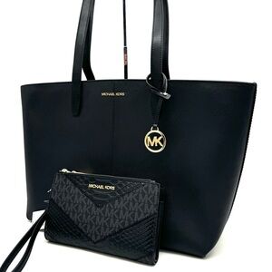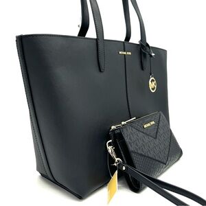 Michael Kors Medium Jet Set Travel Zip Tote Bag & Double Zip Wallet Black/Gold