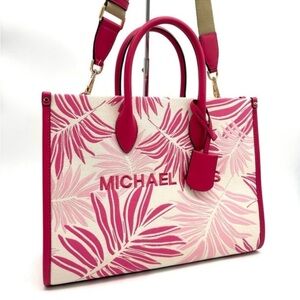 Michael Kors Medium Mirella Tote Bag Electric Pink Multi Leather