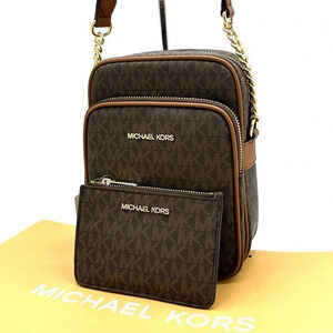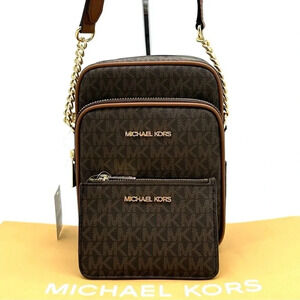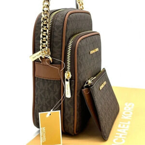 Michael Kors Medium NS Chain Xbody Bag & Small TZ Coinpouch w/ID Brown/Gold