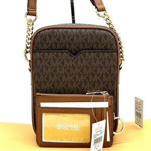 Michael Kors Medium NS Chain Xbody Bag & Small TZ Coinpouch w/ID Brown/Gold