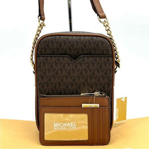 Michael Kors Medium NS Chain Xbody Bag & Small TZ Coinpouch w/ID Brown/Gold