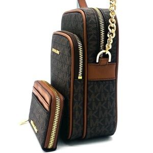 Michael Kors Medium NS Chain Xbody Bag & Small TZ Coinpouch w/ID Brown/Gold