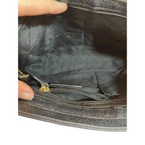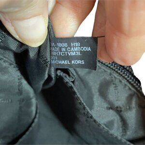 The condition of this bag is great, the pebbled black exterior jacquard interior are very nice. It is missing the MK in the charm.