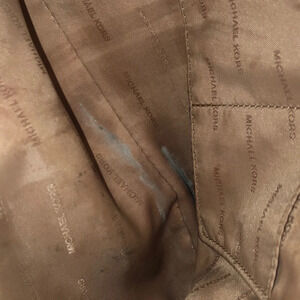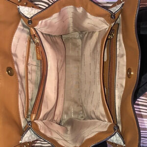 Great used condition. Only major flaw is some staining on the inside of the bag at the very bottom (it’s honestly hard to spot unless you search for it.) Color scheme is vanilla & acorn with gold hardware. Super cute and tons of different pockets for storage! Comes with MK dust bag
