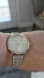 The watch features a round stainless steel case and a two-tone bracelet.