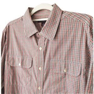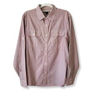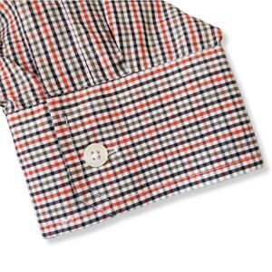 Michael Kors Men Button Shirt L Orange Brown Black Gingham Roll Tab Casual Fall