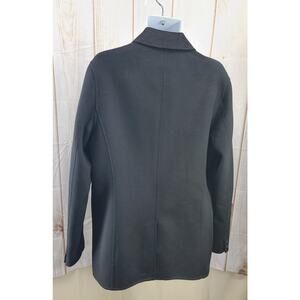 Michael Kors Men M Wool Blend Peacoat Car Coat. Warm and polished-looking, this true black wool blend coat is designed with a sleek 4-button closure with 3 buttons hidden, rear 1/2 satin lining that runs down the sleeves for smooth layering, MK black and grey buttons, 2 button cuffs, 2 large side hand pockets 7 1/2" rear vent that is stitched but can be opened up if desired. This is a beautiful coat that lends added warmth on chilly days. Team it with sharp tailoring or casual denim on the weekend. Excellent like new condition. Size M. See all photos as part of description.