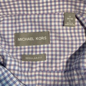 Michael Kors Men Regular Fit Long Sleeve Purple Check Dress Shirt in XL 17 34/35