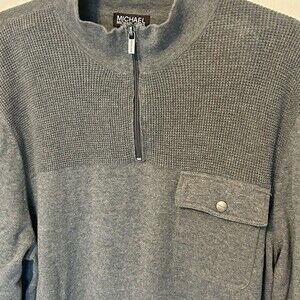 Michael Kors 1/4 Zip Pullover Cotton Sweater Dark Gray Size XL