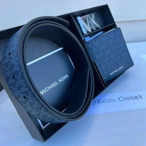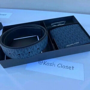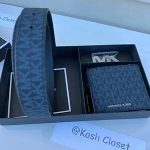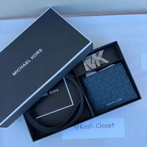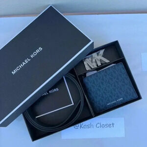100% Authentic Michael Kors !! ** Firm On Price ** Matching belt-and-wallet set In Box is the perfect gift Details : • Belt is cut to size style with total length 51" and adjust fits most size • Wallet and belt set • Logo-print canvas • 69% coated canvas/17% polyester/13% cotton/1% polyurethane • Silver-tone hardware • Imported • Color : Admiral/ Pale Blue • Size : OS • MSRP : $248 **Comes From Smoke & Pet Free Environment ** #MK #Michael Kors #Wallet #Wristlet #Designerbag #Leather #Newcollection #Gift #KashCloset #Collection #Giftset #Shoes #Boots #Designershoes #Training shoes #Laceup #KateSpade #KS #Coach #Bag #Handbag #Purse #Satchel #Backpack #Duffle #Crossbody #Hobo #Messangerbag #Tote * Listing -KC365 *