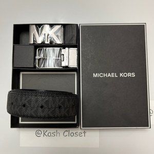Michael Kors Mens Belt Set 4 in 1 Reversible MK Signature Gift Box Black
