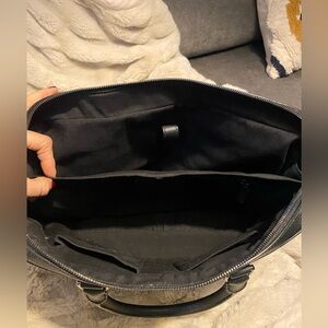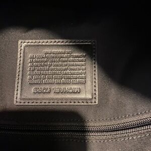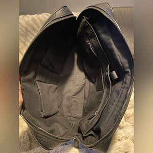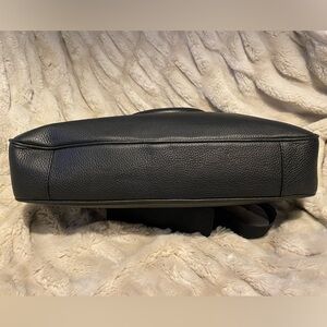 Michael Kors men’s Black and Pebbled Leather messenger a cross body bag. This bag is in very good preowned condition. It has a zipper closure on top. The interior has two large sections, one zipper pocket and three slip pockets. It has an adjustable Crossbody strap with a pad for the shoulder.